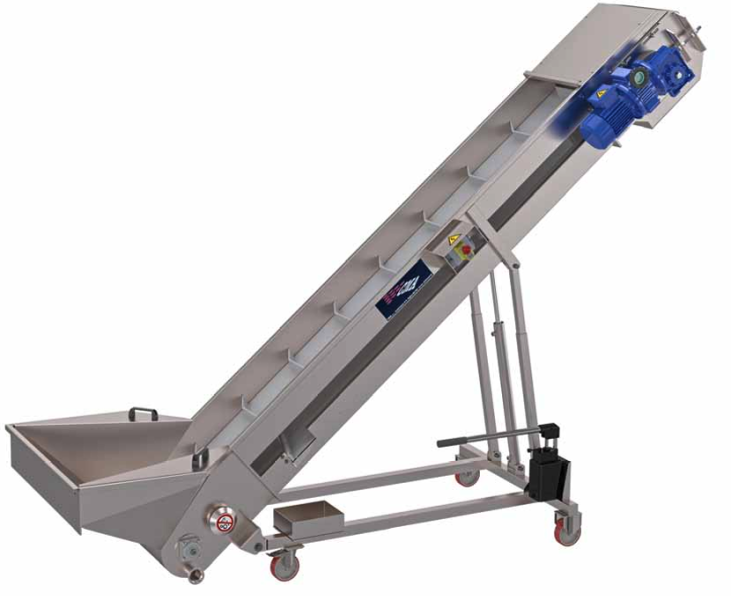 PVC transportni trak je primeren za stik z živili in oblikovan s konkavnim profilom, ki varno vodi grozdje. Njegova dvojna konstrukcija omogoča hitro in enostavno čiščenje zgornjega in spodnjega pasu, vgrajeno strgalo pa skupaj z zbirno posodo skrbi za popolno higieno.