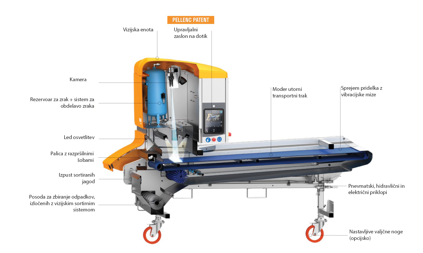 Vsaka jagoda šteje. Napredni računalniško-vizijski sistem poskrbi, da v vašo klet pride le najboljše grozdje. Jagodo za jagodo natančno pregleda in nežno odstrani vse, kar tja ne sodi - zeleni odpad, tujke ter nezrele ali nezdrave jagode.