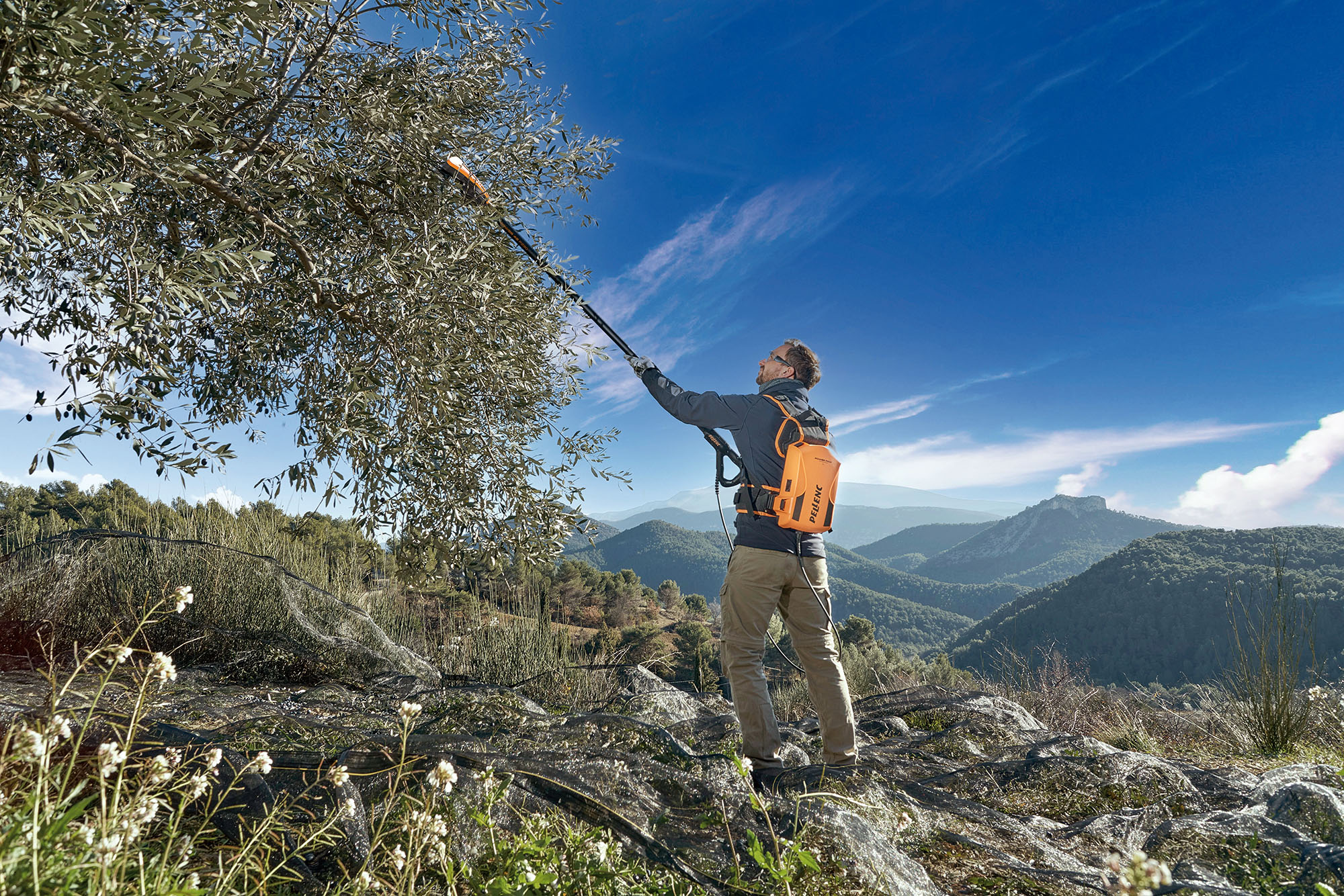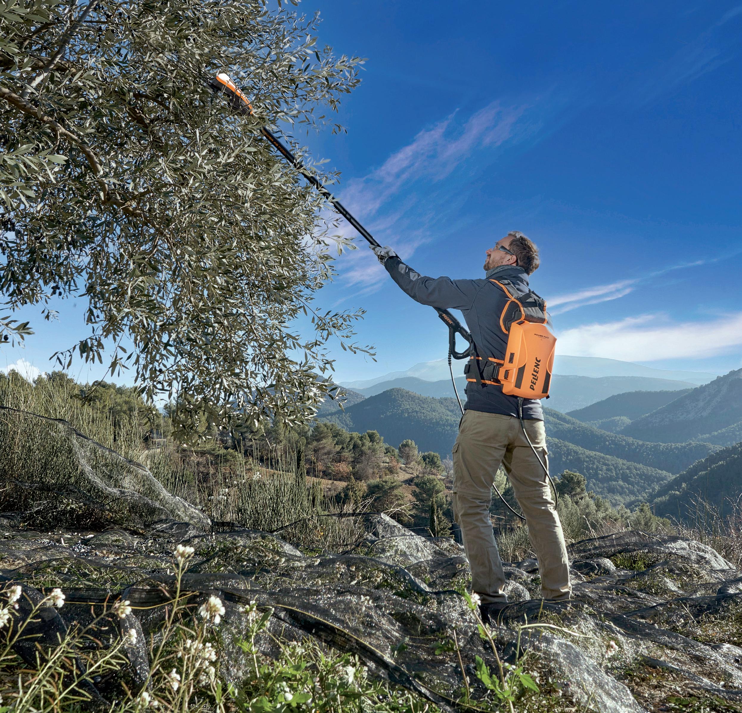S power 48 podjetje Pellenc predstavlja novo generacijo grabljastih tresalcev za obiranje oljk. Zdaj z dvema delovnima hitrostima, ki se popolnoma prilagodita različnim sortam oljk. S tresalec lahko obirate do 8-krat hitreje kot ročno.